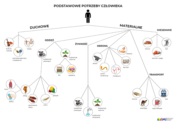 Podstawowe potrzeby człowieka – edukacyjny przewodnik po świecie wartości i materii.